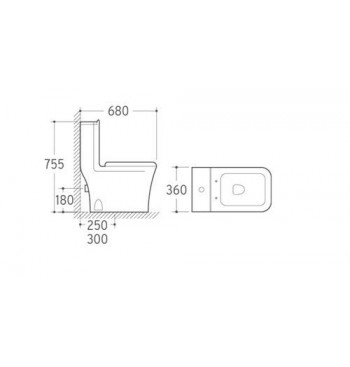 Product Size: 680x360x755mm S-trap: 250/300mm P-TRAP: 180mm